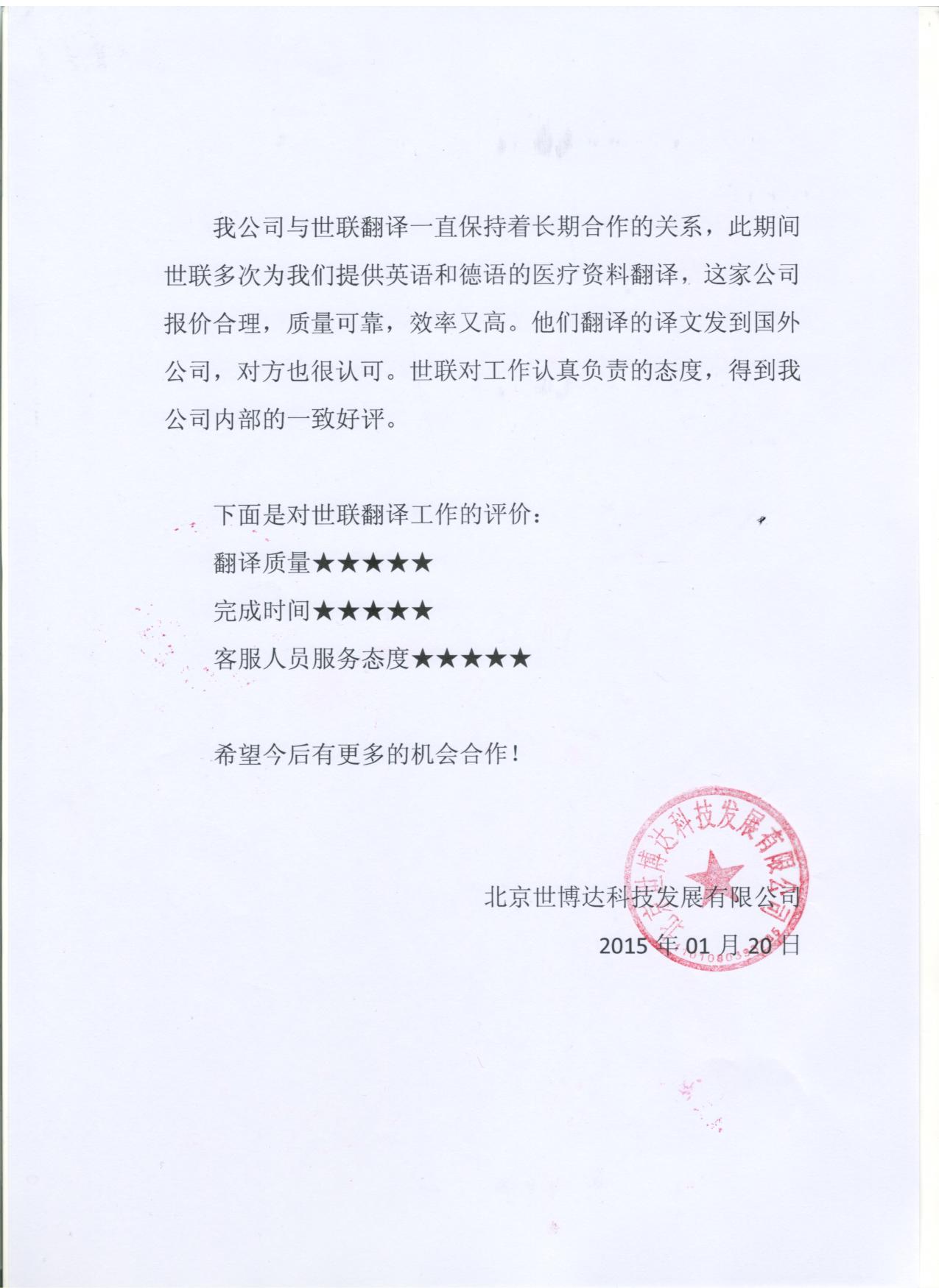 世联翻译公司在北京、上海、深圳等国际交往城市设有翻译基地,业务覆盖全国城市。每天有近百万字节的信息和贸易通过世联走向全球!积累了大量政商用户数据,翻译人才库数据,多语种语料库大数据。世联品牌和服务品质已得到政务防务和国际组织、跨国公司和大中型企业等近万用户的认可。 |