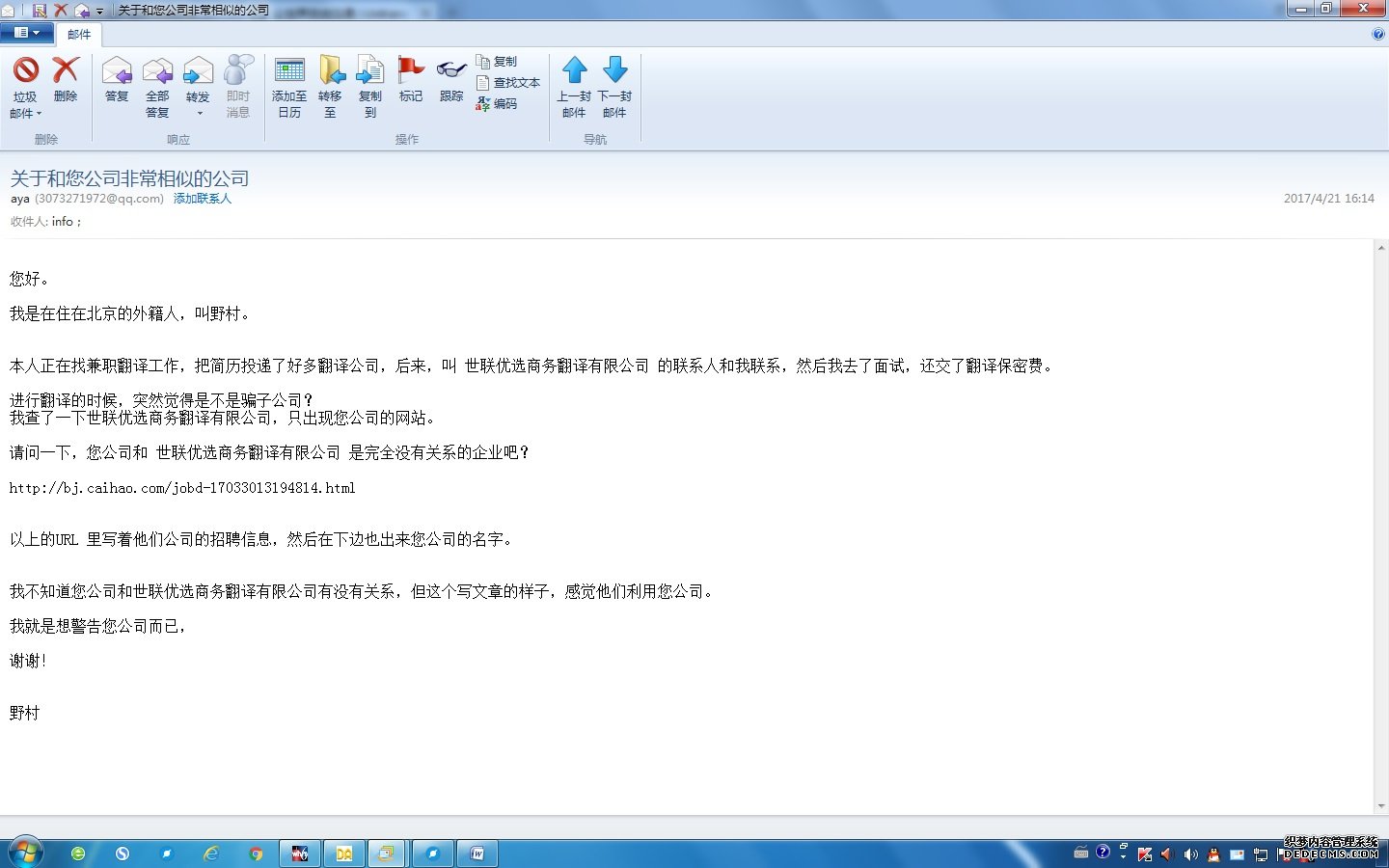 关于涉嫌冒充我司的情况说明